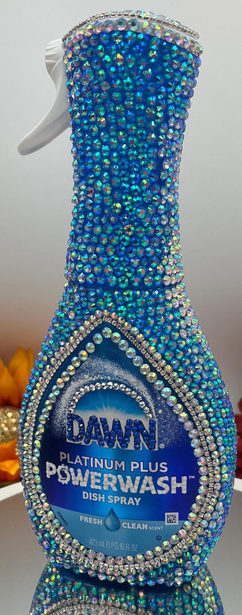 Over on Etsy, the artist at Dream With Me Design painstakingly applies crystals to things like dish soap and laundry detergent transforming them into objet d’art.