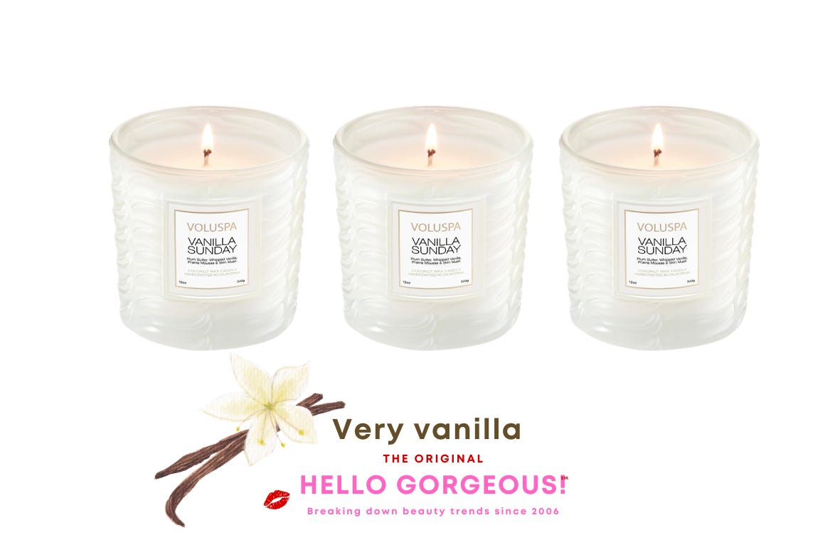 Whipped vanilla and praline mousse in candle form, courtesy of Voluspa