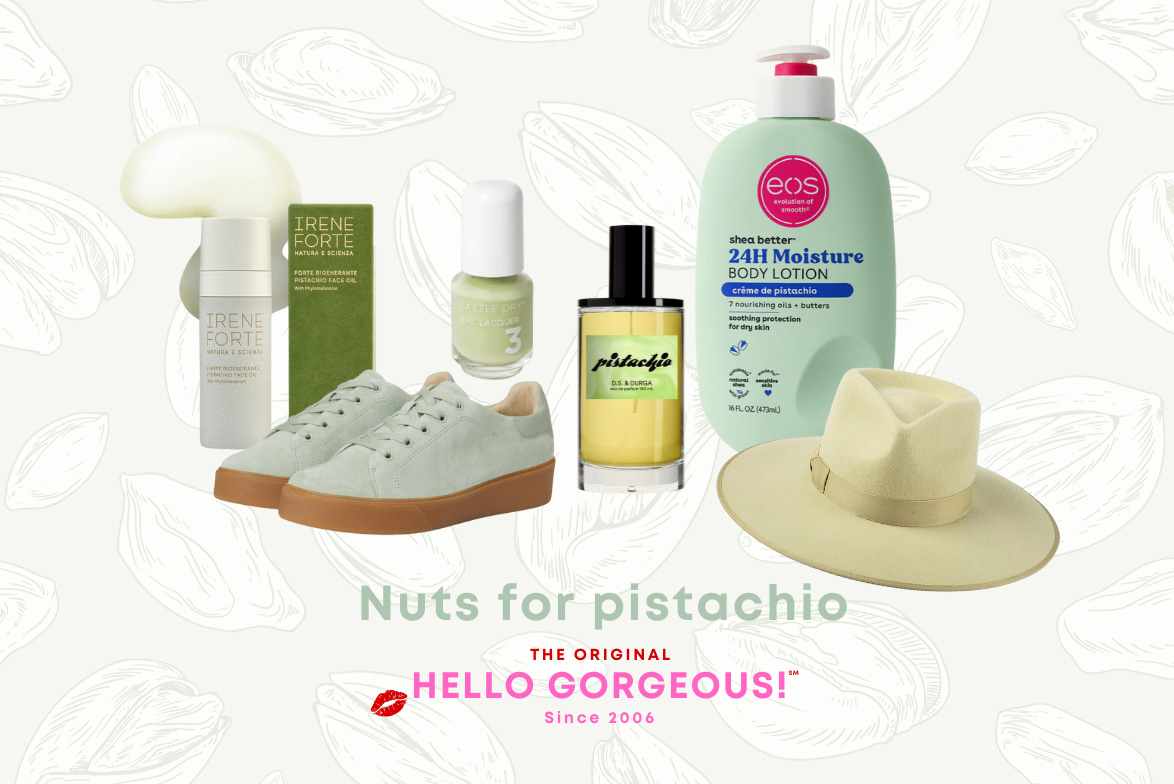 Pistachio as a color is surprisingly flattering. Slightly lighter than sage, slightly punchier than mint, pistachio offers a bit of a playful challenge. Sometimes you’ll find pistachio-hued products that have a hint of zesty yellow to them. I tend to find blue undertones in pistachio are more flattering to most complexions.